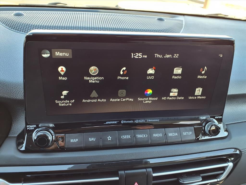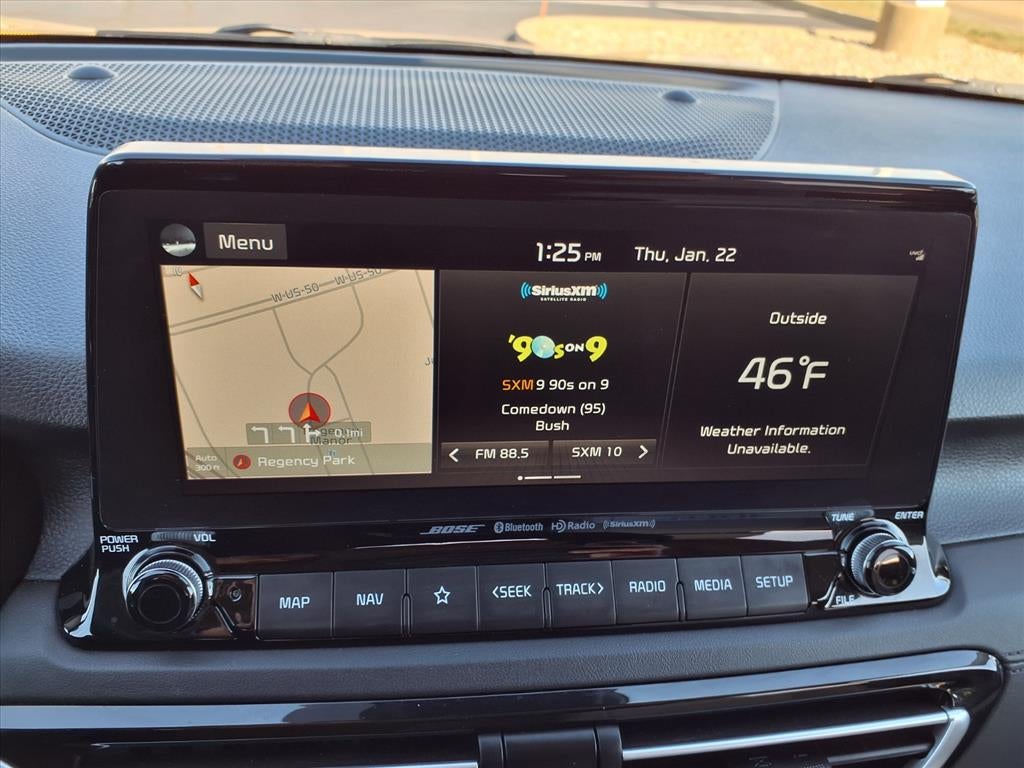 This 2021 Kia Seltos comes equipped with the following - Gray Interior Package, SX Sunroof Package (Sunroof), 18 Alloy Wheels, 4-Wheel Disc Brakes, 4.643 Axle Ratio, 8 Speakers, ABS brakes, Air Conditioning, Alloy wheels, AM/FM radio: SiriusXM, Apple CarPlay & Android Auto, Auto-dimming Rear-View mirror, Automatic temperature control, Brake assist, Bumpers: body-color, Cargo Net (Floor), Cargo Tray, Carpeted Floor Mats, Cross Bars, Delay-off headlights, Driver door bin, Driver vanity mirror, Dual front impact airbags, Dual front side impact airbags, Electronic Stability Control, Emergency communication system, Exterior Parking Camera Rear, Four wheel independent suspension, Front anti-roll bar, Front Bucket Seats, Front Center Armrest, Front fog lights, Front reading lights, Fully automatic headlights, Heated door mirrors, Heated Front Bucket Seats, Heated front seats, Illuminated entry, Illuminated Scuff Plate, Interior Light Kit, Leather Seat Trim, Leather Shift Knob, Low tire pressure warning, Navigation System, Occupant sensing airbag, Outside temperature display, Overhead airbag, Overhead console, Panic alarm, Passenger door bin, Passenger vanity mirror, Power door mirrors, Power driver seat, Power steering, Power windows, Radio: AM/FM/MP3 Display Audio, Rear seat center armrest, Rear window defroster, Rear window wiper, Remote keyless entry, Security system, Smart Key w/ Push Button and Remote Start, Speed control, Speed-sensing steering, Split folding rear seat, Spoiler, Steering wheel mounted audio controls, Tachometer, Telescoping steering wheel, Tilt steering wheel, Traction control, Trip computer, Turn signal indicator mirrors, and Variably intermittent wipers.