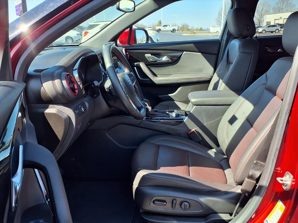 The Chevrolet Blazer offers Apple CarPlay for seamless connectivity. The state of the art park assist system will guide you easily into any spot. The Chevrolet Blazer comes equipped with Android Auto for seamless smartphone integration on the road. See what's behind you with the back up camera on the Chevrolet Blazer. Bluetooth® technology is built into this Chevrolet Blazer, keeping your hands on the steering wheel and your focus on the road. You'll never again be lost in a crowded city or a country region with the navigation system on this unit. The leather seats in this 2023 Chevrolet Blazer are a must for buyers looking for comfort, durability, and style. This unit stays safely in its lane with Lane Keep Assist. Never get into a cold vehicle again with the remote start feature on this unit. It has a clean CARFAX vehicle history report. The Chevrolet Blazer offers Automatic Climate Control for personalized comfort.