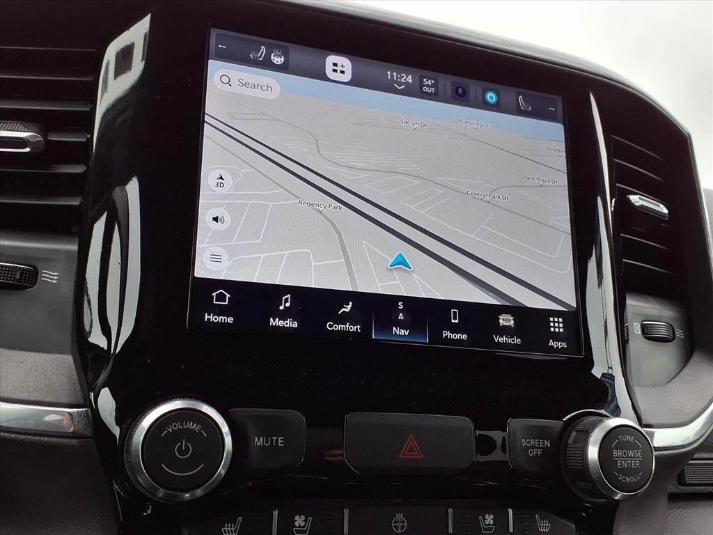 This 2023 Ram 1500 comes equipped with the following - Quick Order Package 27H Laramie, #1 Seat Foam Cushion, 10 Speakers, 3 Rear Seat Head Restraints, 3.21 Rear Axle Ratio, 4 Way Front Headrests, 4-Wheel Disc Brakes, 48V Belt Starter Generator, 4G LTE Wi-Fi Hot Spot, ABS brakes, Adjustable pedals, Air Conditioning, Alloy wheels, AM/FM radio: SiriusXM with 360L, Apple CarPlay, Apple CarPlay/Android Auto, Audio memory, Auto-dimming door mirrors, Auto-Dimming Exterior Driver Mirror, Auto-dimming Rear-View mirror, Automatic temperature control, Brake assist, Bumpers: chrome, Chrome Exterior Mirrors, Class IV Receiver Hitch, Compass, Connected Travel & Traffic Services, Connectivity - US/Canada, Convex Wide-Angle Exterior Mirror Insert, Delay-off headlights, Disassociated Touchscreen Display, Driver door bin, Driver Seat Memory, Driver vanity mirror, Dual front impact airbags, Dual front side impact airbags, Electronic Stability Control, Exterior Mirrors Courtesy Lamps, Exterior Mirrors w/Heating Element, Exterior Mirrors w/Memory, Exterior Mirrors w/Supplemental Signals, For Details, Visit DriveUconnect.com, For More Info, Call 800-643-2112, Front anti-roll bar, Front Center Armrest w/Storage, Front dual zone A/C, Front fog lights, Front License Plate Bracket, Front reading lights, Front Seat Back Map Pockets, Front wheel independent suspension, Fully automatic headlights, Garage door transmitter, Global Telematics Box Module (TBM), Google Android Auto, GPS Antenna Input, GPS Navigation, HD Radio, Heated door mirrors, Heated Front Seats, Heated front seats, Heated Steering Wheel, Heated steering wheel, Illuminated entry, Integrated Center Stack Radio, Integrated Voice Command w/Bluetooth®, Leather steering wheel, Leather Trim 40/20/40 Bench Seat, Low tire pressure warning, Manufacturer's Statement of Origin, Memory seat, MOPAR Front & Rear Rubber Floor Mats, Navigation System, Occupant sensing airbag, Outside temperature display, Overhead airbag, Overhead console, Panic alarm, ParkView Rear Back-Up Camera, Passenger door bin, Passenger vanity mirror, Pedal memory, Power 2-Way Driver Lumbar Adjust, Power 2-Way Passenger Lumbar Adjust, Power 8-Way Driver & Passenger Seats, Power door mirrors, Power driver seat, Power passenger seat, Power steering, Power windows, Power-Folding Mirrors, Radio data system, Radio: Uconnect 5 Nav w/8.4 Display, RAM Grille Badge - Chrome, Rear 60/40 Folding Seat, Rear anti-roll bar, Rear seat center armrest, Rear step bumper, Remote keyless entry, Security system, SiriusXM Radio Service, SiriusXM w/360L, Speed control, Split folding rear seat, Steering wheel mounted audio controls, Tachometer, Telescoping steering wheel, Tilt steering wheel, Traction control, Trip computer, Turn signal indicator mirrors, USB Host Flip, Variably intermittent wipers, Ventilated Front Seats, Ventilated front seats, Voltmeter, Wheels: 18 x 8 Aluminum Base Painted, and Wheels: 20 x 9 Premium Paint/PolisheD.
