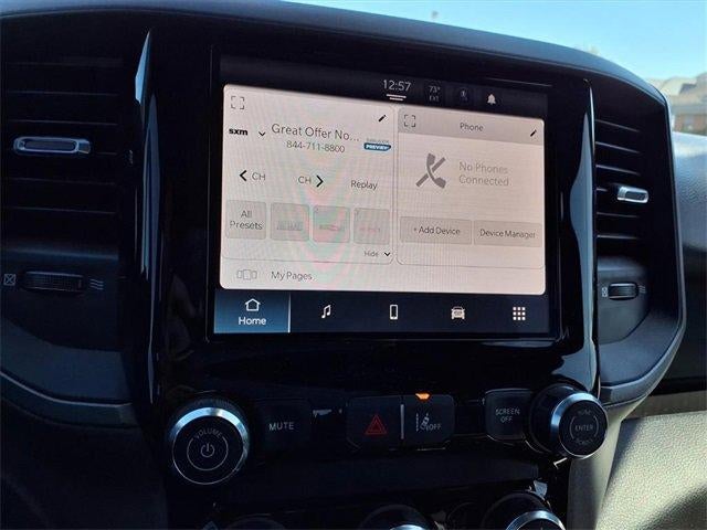 This 2025 Ram 1500 comes equipped with the following - ABS brakes, Active Cruise Control, Compass, Electronic Stability Control, Heated door mirrors, Illuminated entry, Low tire pressure warning, Manual Folding Exterior Mirrors, ParkView Rear Back-Up Camera, Remote keyless entry, Traction control, 3.21 Rear Axle Ratio, 4 Way Front Headrests, 4-Wheel Disc Brakes, 40/20/40 Split Bench Seat, 6 Speakers, Air Conditioning, AM/FM radio, Apple CarPlay/Android Auto, Auto High-beam Headlights, Black Exterior Mirrors, Brake assist, Delay-off headlights, Driver door bin, Dual front impact airbags, Dual front side impact airbags, Exterior Mirrors w/Heating Element, Front anti-roll bar, Front Center Armrest, Front reading lights, Front wheel independent suspension, Fully automatic headlights, Heavy Duty Vinyl 40/20/40 Split Bench Seat, Manual Adjust 4-Way Driver Seat, Manual Adjust 4-Way Front Passenger Seat, Occupant sensing airbag, Outside temperature display, Overhead airbag, Overhead console, Panic alarm, Passenger door bin, Passenger vanity mirror, Power door mirrors, Power steering, Power windows, Radio data system, Radio: Uconnect 5 W w/8.4 Display, RAM Grille Badge - Black, Rear anti-roll bar, Rear step bumper, Speed control, Tachometer, Telescoping steering wheel, Tilt steering wheel, Variably intermittent wipers, Voltmeter, and Wheels: 18 x 7.5 Steel Painted.